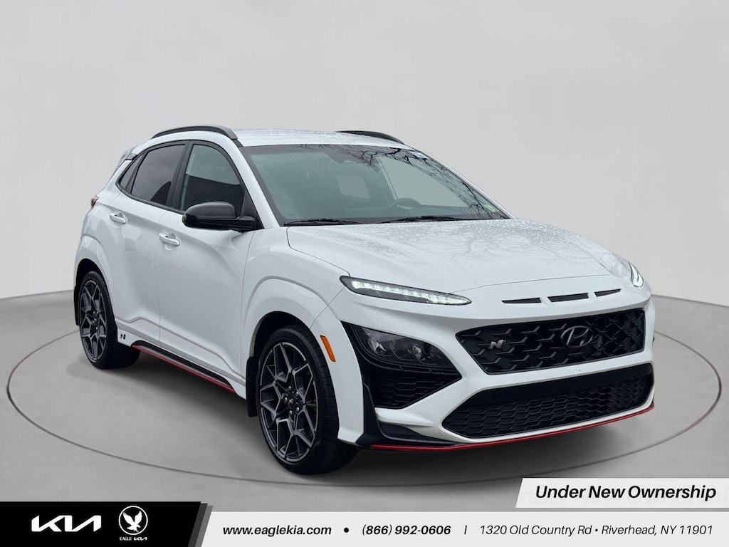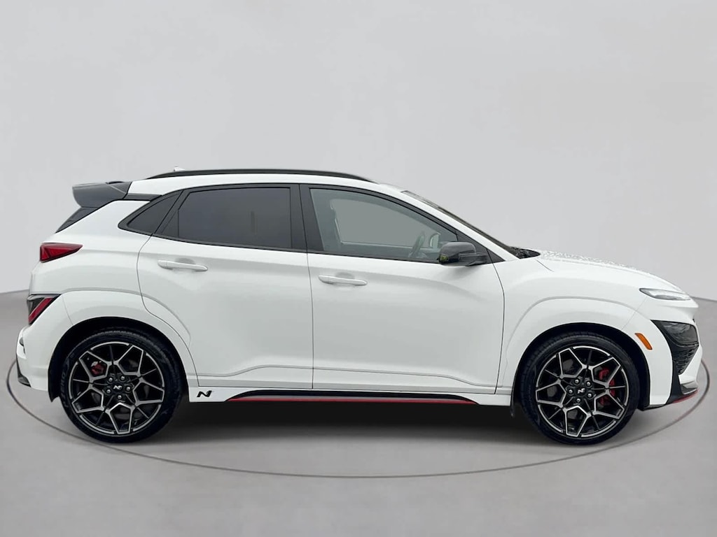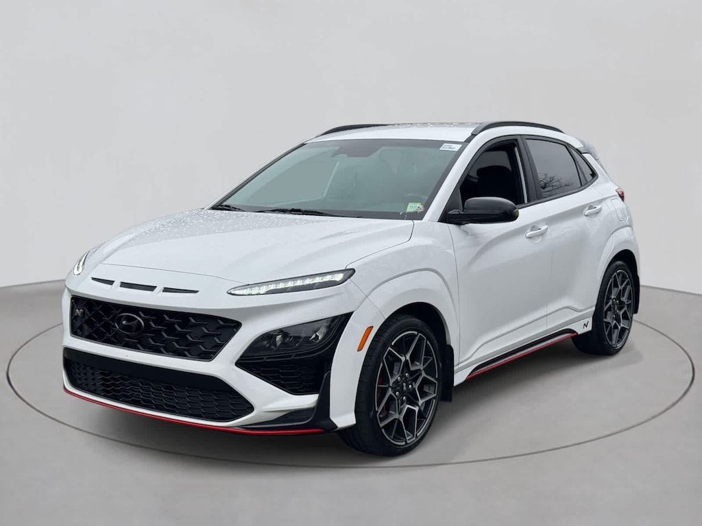 Kona N trim, Lunar White exterior and Black interior. EPA 27 MPG Hwy/20 MPG City! Heated Leather Seats, Nav System, Aluminum Wheels, Turbo Charged Engine, Back-Up Camera.